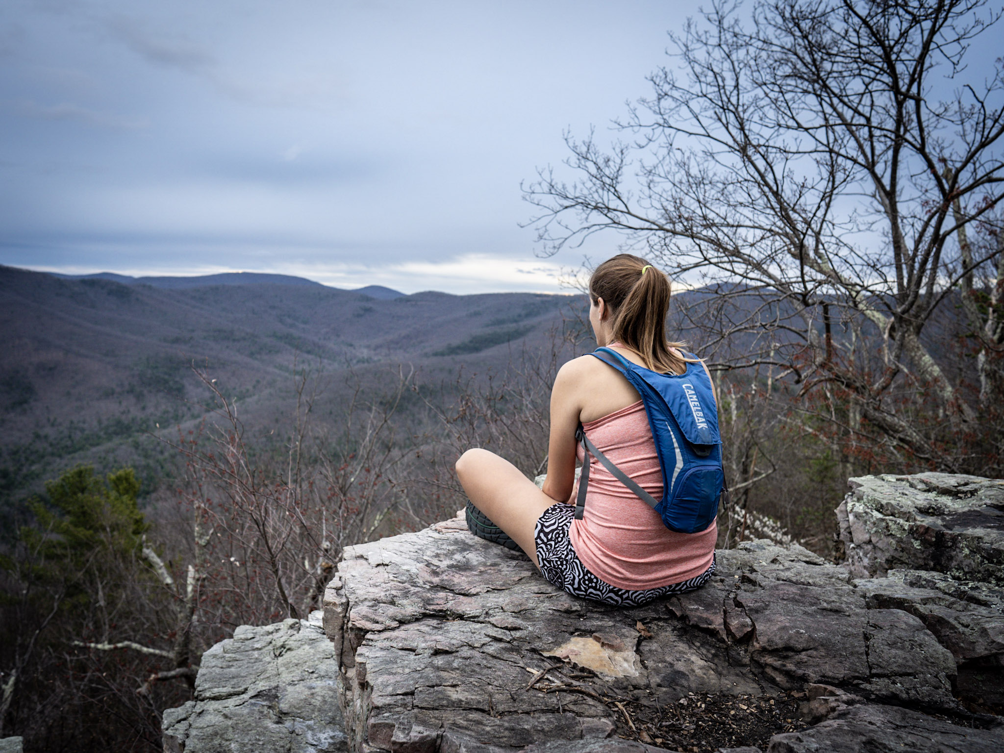 This challenging hike climbs Furnace Mountain to reveal expansive views of the Blue Ridge Mountains and Skyline Drive from the rocky summit and overlook. The summit’s other-worldly rock formations are perfect for scrambling. The summit also provides a nice spot for a rest and refreshment before descending back down the mountain to Madison Run.