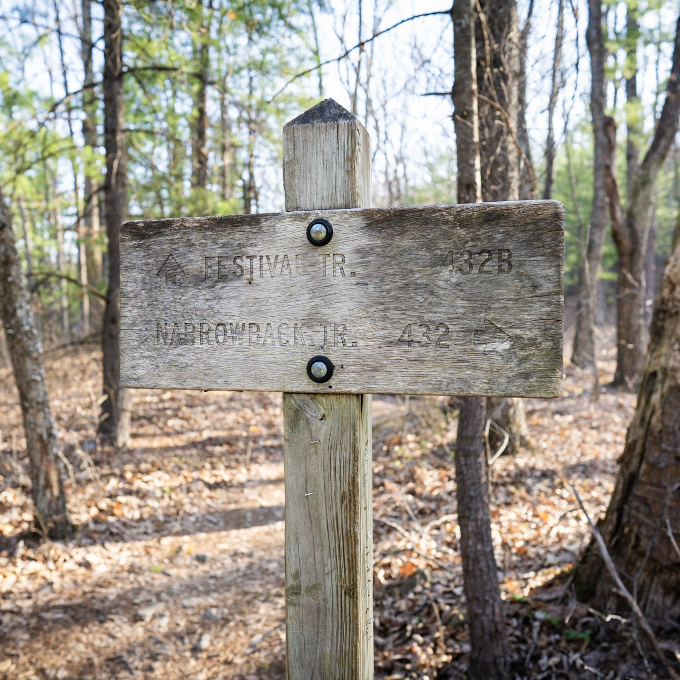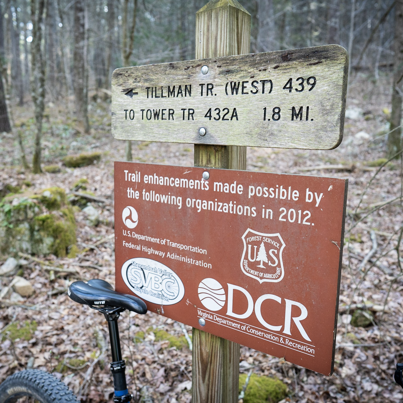 Signs and marking: This ride is comprised of the Narrowback West Trail, Tower Trail, and Tillman West Trail, as well as two unpaved roads. Trail junction signs are present at all key intersections. Follow the trail signs closely to make your turns onto the next trail.