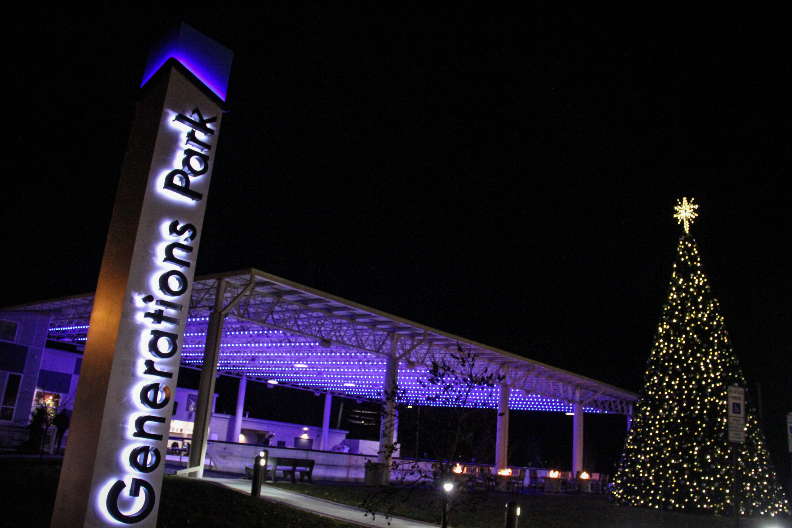 Generations Park operates an ice skating rink during the winter and a farmers’ market, movies, and concerts during the spring, summer and fall. The ice rink opens on Thanksgiving Day each year and remains open through the first weekend in March.